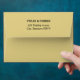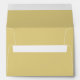 Custom champagne gold colored wedding envelopes feature elegant black return address text on the back flap.