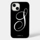 Create your own stylish, elegant iPhone case and protect your phone in style! This elegant case features a stylish large elegant calligraphy style script font initial in white on a black background and name at the bottom in a simple styled font. Select from slim or tough style of iPhone case and your model iPhone easily from the drop down boxes.
