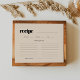 A simple and minimalist card to write down a recipe for the bride-to-be. A cute and original idea for a bridal shower party. Fully customizable text and colors.
