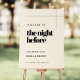 Welcome to the night before sign: a simple foam board sign to welcome your guests to your rehearsal dinner. Easily customizable with your favorite colors.