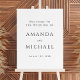 Simple, elegant and tasteful, this classic wedding welcome sign welcomes your guests in elegant style. A timeless classy serif font presents your text with simple elegance. You can add, remove or adjust the placement of the text to suit your needs. The popular white background with black text adds to the clean simplicity of this design. This foam board poster is available in a variety of sizes to suit your needs.