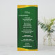 This elegant emerald green and gold wedding menu is perfect for your big day. This menu has a lovely green silk and gold color scheme that is ideal for a bride who wants a lovely green look. It includes everything you'll need for your reception, including your first course, second course, entree, and dessert. You can customize it by including your favorite items.