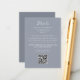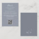A simple minimalist wedding details enclosure card with white text and a dusty blue color scheme. This template features a QR code, wedding website, and information and response reply vial website. The back features a grey ampersand and bride and groom's monogram initials.