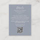 This design features simple elegant website details card, information rustic calligraphy modern, web address watercolor rsvp online,theknot.com minimalist rsvp QR code, info foliage accommodations dusty blue, floral botanical elegant and modern, spring summer winter fall, simple classy typography web address, web internet guest response, more information modern web site