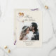 Wedding Photograph Save the Date custom card depicts an elegant vintage minimalist floral design with simple beige, lavender and purple flowers and leaves. The back features an inspirational quote, "Two lives united in friendship, Two friends united in love, One love united in Christ."