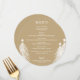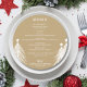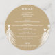 A soft gold round dinner menu with white Christmas trees and your menu details in chic lettering. Perfect for a holiday Christmas party or any special event with a sit down dinner.