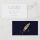 Present your credentials with confidence with our Simple Elegant Gold Quill Business Cards. A simple clean front with space for your name, title, and contact information presented in elegant typography on a clean white front. The back features a luxurious gold feather on a navy backdrop, which sets a professional tone that offers a tactile promise of quality and discretion.