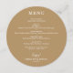 A round dinner menu card on gold (or any color) and chic lettering in white displays your menu choices. Perfect for a modern wedding reception, wedding rehearsal dinner, anniversary party or any special event with a sit down dinner. Choose ANY COLOR BACKGROUND, any COLOR TEXT, any FONT! Easily personalize with your dinner menu and details.