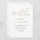 Plain white envelopes are included with paper invitations and will come to fit the invitation size you select. If you don’t need the envelopes, you may choose to not receive them by selecting the dropdown below "Envelopes" and choosing "None." If you’d like to have a design on your envelopes, you can browse all of these available envelopes to find the design that complements your Simple Elegant Gold Script Modern Bridal Brunch Invitation.