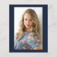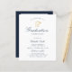 An elegant navy blue graduation ceremony invite card. The text details and image can be personalized.