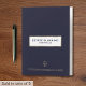 Present your clients' legal documents in style with our simple elegant portfolio folder. The blue background and brushed gold framed window exude professionalism. Customizable text in a stylish window framed in a golden border with justice scales and company information in the lower thirds, making it perfect for estate planners, attorneys, financial advisors or any business professional. Organize and showcase your portfolio materials with confidence.