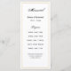 Elegant memorial service or Celebration of Life Memorial program card with gold border, black text on white background, and script heading. Customize all text; if you don't need a field just delete it. The program card can serve as a guide to the order of service at the event and also as a keepsake. If you like you can add a photo, bio, or other text on the back of the card also. See matching 5 x 7 memorial invitation from this designer.