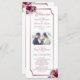 Custom Photo Simple Elegant Metallic Coral Floral |Modern Wedding Program/ Modern Hand Lettered Wedding Program for your wedding ceremony. Replace the sample photo with your own and use the template fields to easily add your text. The Customize menu can also be used to change the color of the font and background to suit your wedding color scheme. Trendy and chic yet elegant and timeless - coordinates beautifully with so many of today's wedding styles. Shown in metallic coral and white but can be customized to your wedding colors for the text and background. Add any other graphics, text(size, colors, position, fonts in edit design tools down below of all the templates), or monograms to your personalize this template.