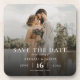 Simple modern wedding save the date coaster with full photo and elegant typography.