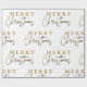 This elegant and minimalist Christmas wrapping paper features a classic white background adorned with a repeating pattern of the phrase "Merry Christmas" in a stylish, handwritten font. The word is printed in a subtle gold ink, adding a touch of luxury and sophistication to the design.