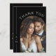 Your wedding guests will be so happy to receive this beautifully elegant wedding thank you card in black featuring a special photo from your wedding day. Simple, elegant and tasteful, this classic design features a thin line border along the left edge with the bride and groom's monogram initial. Lovely serif lettering spells out Thank You in curved text above the arch photo template. Replace the sample photo with your selected photo. The back of the card has a text template with a sample thank you message that you can use as written, or personalize with your own wording, along with the bride and groom's names.