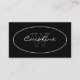 A business card in a simple and elegant design in white on black with a name and monogram in an oval on the front and contact information on the back.