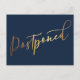 Simple Elegant Navy & Gold Postponed Announcement Postcard