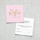 Simple square referral card for beauty related professionals. Simple clean design with pale rose background and faux golden fonts, fully customizable.