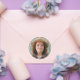 This elegant Classic Round Sticker boasts customizable white text against a portrait photo background that you can personalize. Perfect for adding a personal touch to envelopes, gifts, or favors, its timeless round design radiates sophistication. Whether for weddings, showers, or other special occasions, this sticker seamlessly blends traditional charm with contemporary customization options. Elevate your message with its refined script font, infusing sophistication into every occasion. Let this exquisite and versatile sticker design help you express your gratitude memorably.