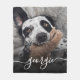 Custom pet photo blankets with your text offer a cozy and heartwarming way to celebrate your furry friend. This personalized blanket design features a full-photo layout, making your pet the star of the show, paired with an elegant script name overlay for a stylish and loving touch. Ideal for dog lovers, pet parents, or as a thoughtful gift for pet memorials or birthdays, this design turns your favorite photo into a functional keepsake. Whether draped over a couch or used for cuddling, this custom blanket is a beautiful way to keep your beloved pet close and cherished every day.
