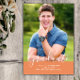 Simple Elegant Photo Graduation Announcement with a sleek and simple vertical design in orange. Add a photo and graduation details to customize. Background color on back side of invite may be changed to complement the photo or to add a school color.