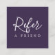 Simple square purple and white referral card for beauty related professionals. Simple clean design, fully customizable.