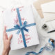 Cute holiday wrapping paper featuring modern typography and a simple design with "Merry Christmas" in an elegant red script along with the recipient's name. This custom wrapping paper is sure to add a festive touch to your Christmas gift giving.