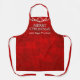 Great color and even though I ordered the kid size, it covers well enough to use during the holidays. I am not a big woman and prefer a shorter apron. I stand 5"6" and the length of the garment goes to mid-thigh. The tie straps fit well at my waist and even though there is no neck strap adjustment, the opening is plenty big enough. I am happy with the size and fit. I am sharing my apron with my 10 year old grandson, too! The color is vibrant and looks good, as shown on the website. The stitching looks strong and reinforced. Photographed is front side and back side of the apron, reinforced straps and coloring. My phone camera may not be the best at showing the details.
