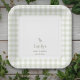 Simple Elegant Sage Green Gingham Baby Shower Paper Plates