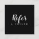 Simple elegant black and white referral card featuring chic hand-drawn script typography. Personalize by adding your contact details on the reverse along with your referral offer. Designed by Thisisnotme©