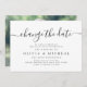 Modern script "change the date" in black and white, with optional couple's picture on the back, simple and elegant, inform your wedding guests the updated information with this announcement.