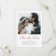 This simple, elegant modern photo wedding save the date flat card template features your names and details in a slightly softened black beneath your photo. This design looks great with either sharp or rounded corners, try both looks in editing mode to see which grabs you! We've chosen a fancy script for the 'Save the Date' part of the design. We love its flourished capital letters, lively loops and ornate flair. The default color for the Save the Date script is an elegant shade of rose gold. You might choose to change the font, punctuation or color used for various text elements of this design on the front and/or back. For example, you might choose to give a different color to your name text or to the Save the Date text, or change the SAVE THE DATE text below the photo to SAVE OUR DATE or something different. You might choose to delete something or change a text field entirely with a different message. The background on the front is set as transparent to let the color of the paper simply serve as the base tone, but you can edit this and choose a color if you prefer. On the back, we've chosen a background color called White Smoke, it's a very light gray that's mostly white. You can also change this if you'd like. We've added some sample text on the back in all lower case in slightly softened black. Instead of entering your own wedding website address, you might decide to enter a different sort of message there instead. You can also change the font, text color or use some upper case, etc. Of course you can also simply delete all of our sample text on the back and leave that side of the card totally blank, perhaps to hand write your own message later, or to send without any text on the back.The default paper type, matte, has a soft warmth to it and resists smudging, so it's a great choice for writing your own message. You can edit this and choose semi-gloss or another paper type instead. In any case, please do remember to delete all of our sample text on both sides as well as our sample photo. We hope you'll enjoy experimenting with this clean, contemporary template design and make it uniquely yours with the intuitive design tools, your favorite photo and your inspiration. We have a variation of this design with 'Save the Date' above the photo along with a selection of other modern minimalist save the date cards, so please have a look!