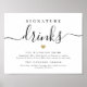 Modern script wedding signature drinks sign in black and white with color editable heart shape, simple and elegant.