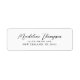This address label features a clean and elegant design with the name in a stylish script font and the address details in a clear, all-caps serif font. The simple black text on a white background creates a classic and sophisticated look.