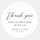 This wedding round sticker features a simple and elegant design with a mix of script and serif fonts. The black text on a white circular background creates a clean, timeless, and sophisticated look.