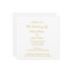 Plain white envelopes are included with paper invitations and will come to fit the invitation size you select. If you don’t need the envelopes, you may choose to not receive them by selecting the dropdown below "Envelopes" and choosing "None." If you’d like to have a design on your envelopes, you can browse all of these available envelopes to find the design that complements your Simple Elegant Script Wedding Invitation Square.