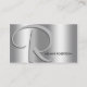 Simple Elegant Silver on Silver Script Monogram Business Card