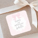 Simple Elegant Soft Pastel Pink Bow Happy Birthday Square Sticker