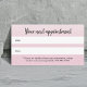 Elegant simple fully customizable appointment card template with texture pink and white colors. Perfect for makeup artist, hair stylist, beauty consultant or any fashion/beauty related professionals.