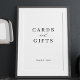 Modern classy wedding cards and gifts sign poster featuring a chic black and white typography script. +++++++++++++ Suitable for formal stylish weddings.