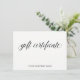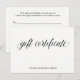 This stylish black and white gift certificate features elegant, modern typography. The back is contains plenty of room for you to totally customize with your store or company information.