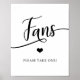 Simply elegant design in black script topography letters and white background and black letters. Small heart in middle. Wedding or bridal shower FANS SIGN for any time of year or theme. Place sign on table where guest fans can take one at the entrance