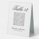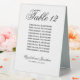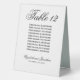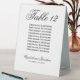 These wedding table number tent signs are simple and elegant. They feature fancy script with the table number with space for 10 names, making it easy for your guests to find their tables. The text is black on a white background. There is space for the names of the couple and wedding date as well.