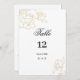 This gorgeous wedding invitation design features simple, elegant white and gold luxury floral Wedding Table Numbers invitations that are perfect for any classy and sophisticated ceremony. These exquisite gold glitter flowers are ideal for stylish couples. Customize this design with your message and personalized information. All designs are printed.