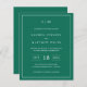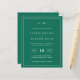 Simple budget wedding invitation featuring a modern yet elegant design with your two letter monogram at the top, a bold date layout and your details surrounded by a thin border. All design elements are in white over a jewel tone emerald green background and may be changed in the design editing tool. A chic and stylish design that is great for a minimalist couple.