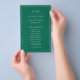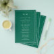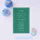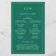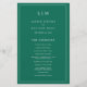 Simple jewel tone emerald green budget Wedding Program flyer featuring a modern yet elegant design with your two letter monogram at the top and your details surrounded by a thin border. The fonts and colors may be changed in the design editing tool. The front has your order of ceremony and the back has your wedding party and thank you message. A chic and stylish design that is great for a minimalist couple. These cheap wedding programs are printed on sheets of paper for a budget friendly option.