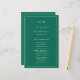 Simple Wedding Program featuring a modern yet elegant design with your two letter monogram at the top and your details surrounded by a thin border. All text is in white over a jewel tone emerald green background and may be changed in the design editing tool. The front has your order of ceremony and the back has your wedding party and thank you message. A chic and stylish design that is great for a minimalist couple. These cheap wedding programs are printed on sheets of paper for a budget friendly option.