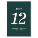 With simple minimalist styling and a slight retro vibe, this wedding table number in popular emerald green with ecru beige lettering repeats on both sides of the card. Personalize with the bride and groom's name and wedding date. Create a separate table number card for each table number you need and add to cart as you create each one. Once you have all your table numbers, complete the checkout process.