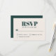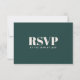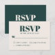 With a sense of modern minimalist simplicity, this stylish simple wedding response card design is presented in the popular color choice - emerald green and light ecru beige. The front of the card has an ecru beige background with emerald green text and the back of the card has an emerald green background with ecru beige text. Trendy bold typeface spells out RSVP. Personalize the required response date with your required date.